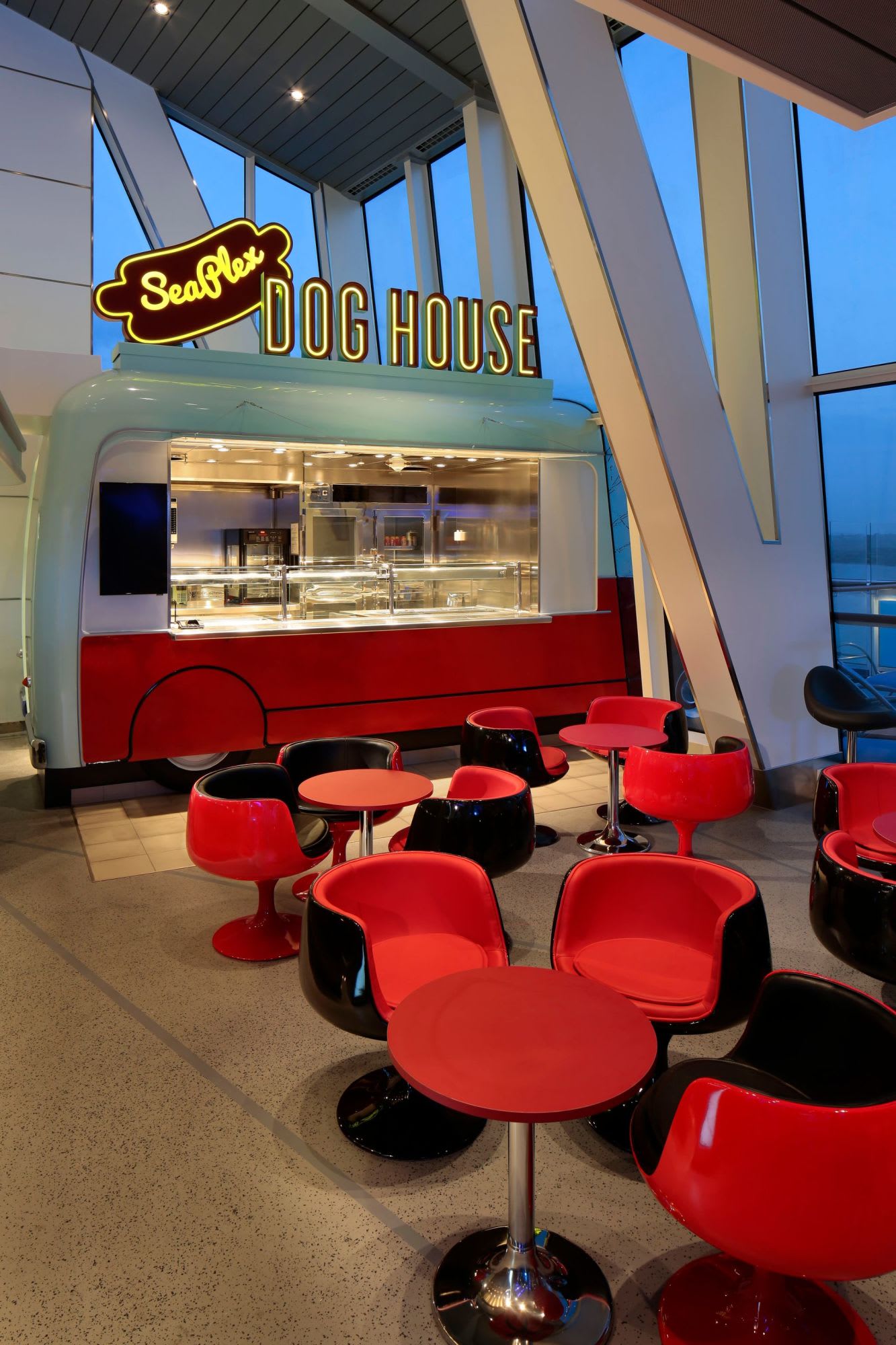 洋上最大のスポーツコンプレックス「シープレックス」を擁するロイヤルカリビアン。スポーツを楽しんでお腹が減ったら併設された「シープレックス・ドッグハウス」(SeaPlex Dog House)でホットドッグをいただいてみては?