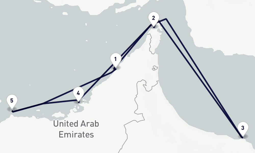 2024年1月21日5日間 / 4 nights / 5 days, one-way from Dubai (Port Rashid, UAE) to Abu Dhabi