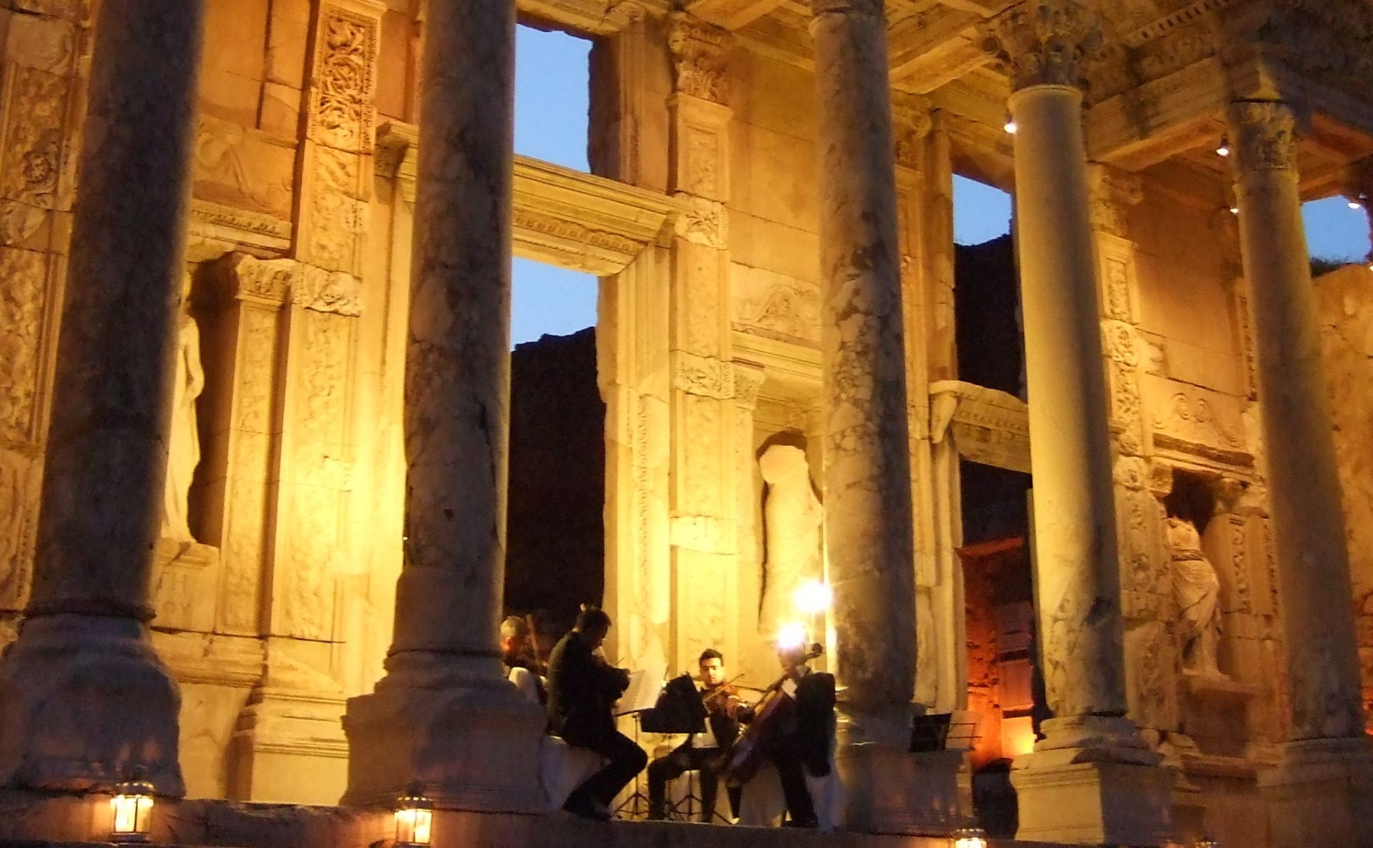 クサダシに停泊した夜に、希望する乗客全員が参加できる、世界遺産のエフェソス遺跡での特別イベントでした。シーボーンの乗客のためだけに用意された会場、ライトアップされたケルスス図書館で、弦楽四重奏のコンサートが開かれ、夢のような時間が過ごせました。