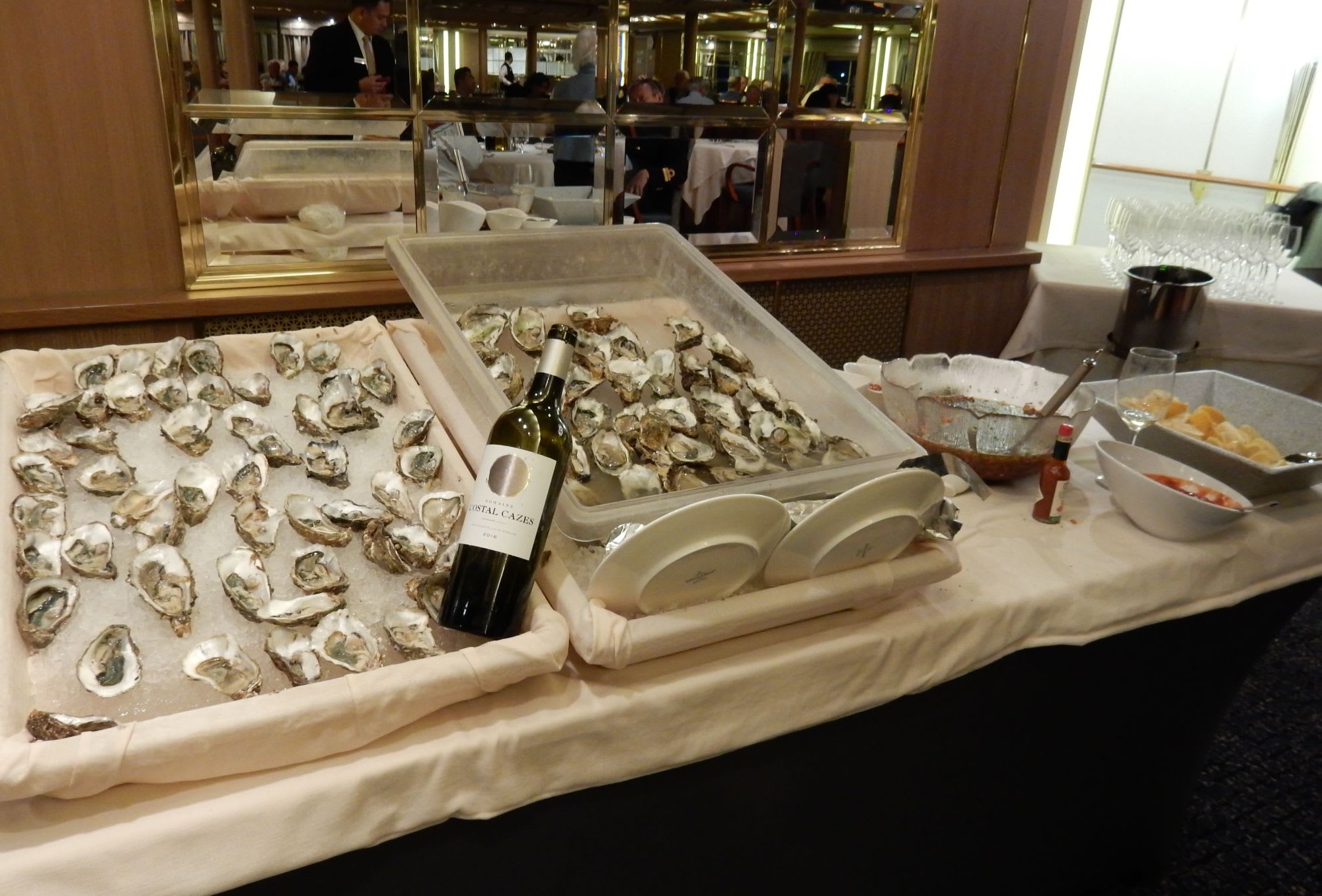 各寄港地では、その土地のローカルフードやワインをテーマにした寄港地観光が用意され、また、船内でも、パエリアや生牡蠣、チーズなど、地方の名物料理の数々が、シェフの実演で提供されました。