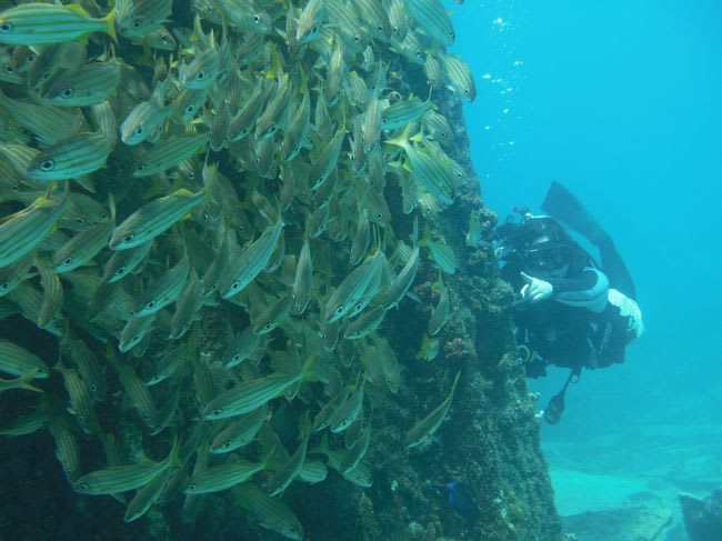 沈没船に群れる魚たち@アルバ