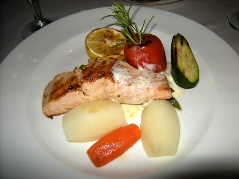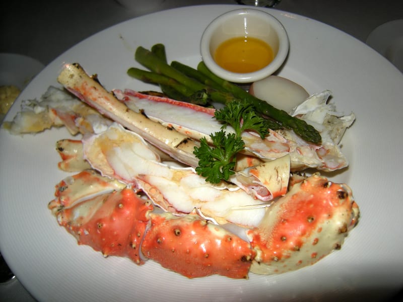 名物料理かどうかは分かりませんが以前プリンセス・クルーズのアラスカコースに乗船した時にタラバ蟹とキングサーモンのグリルがデイナーのメニューに載った日がありました。