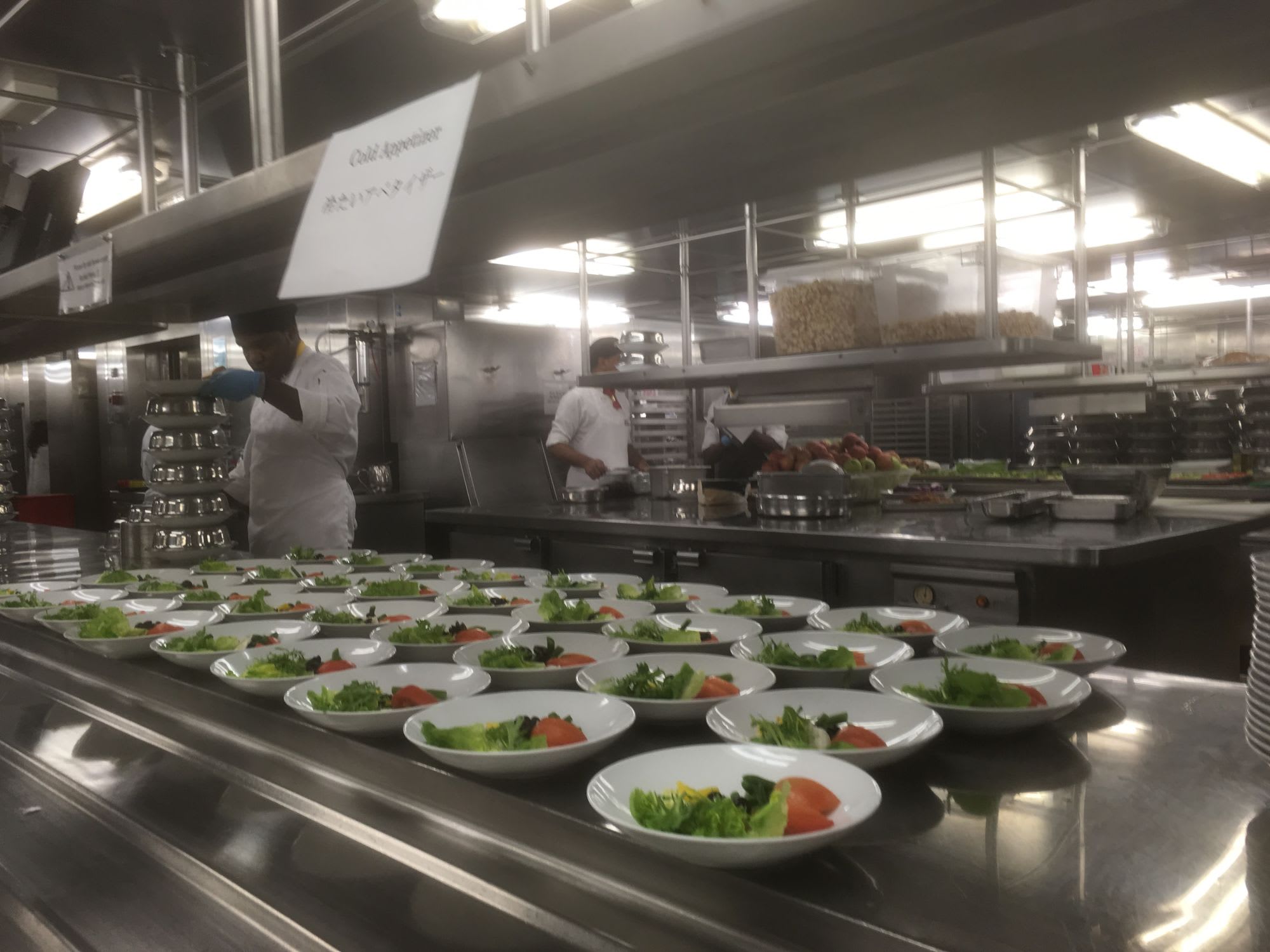 2017年のHISは前年2016年のCosta Victoriaから比べると学習効果というのかフィードバックというのか、判りやすく言うとチャーターに慣れてきた。と感じました。サービスという意味では「濃く」なく「薄い」のですが、これで十分という感じで、お節介的な干渉もあまりなく程よい感じでした。 写真はキッチンツアーです。出口で、ワインの即売会あり。