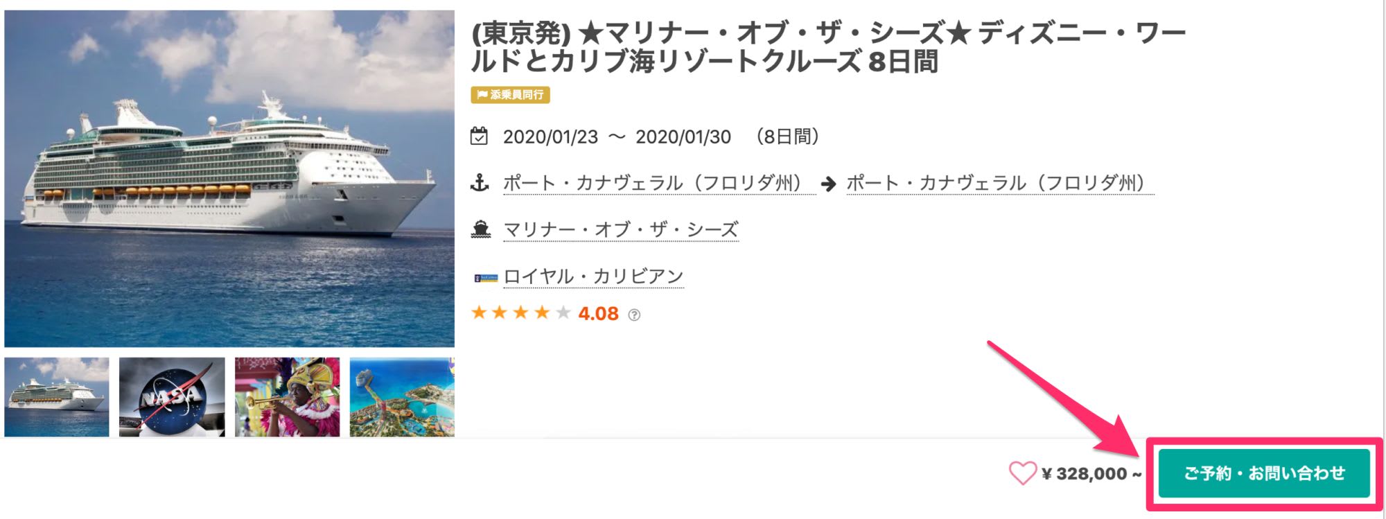 1、掲載商品の中からクルーズ商品を選び、予約をおこないます