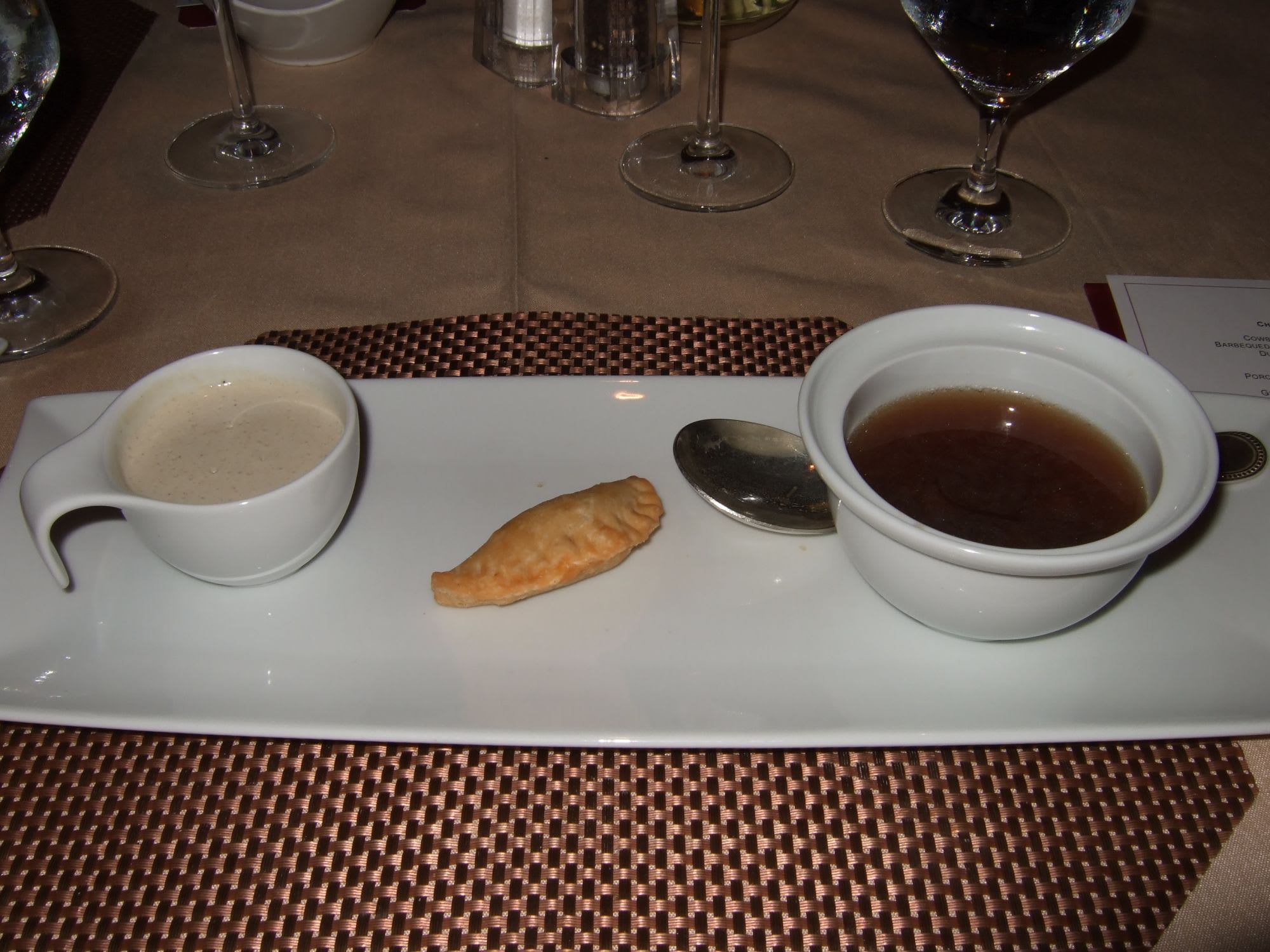 Porcini & Chestnut Cappuccino, Honey Spiced Squab & Fig Empanada