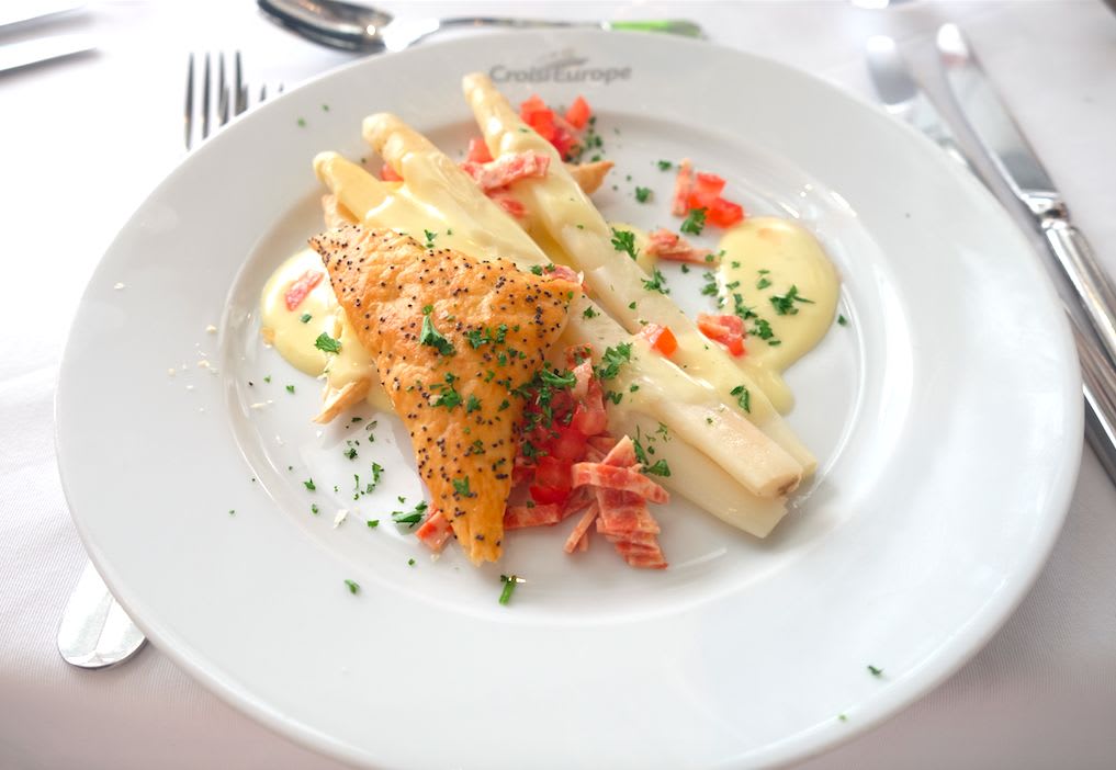 ヨーロッパのこの時期(5~7月頃)にしか食べることの出来ない白アスパラガスが味わえて、これもまたフライ&クルーズの醍醐味だなと感じました。
