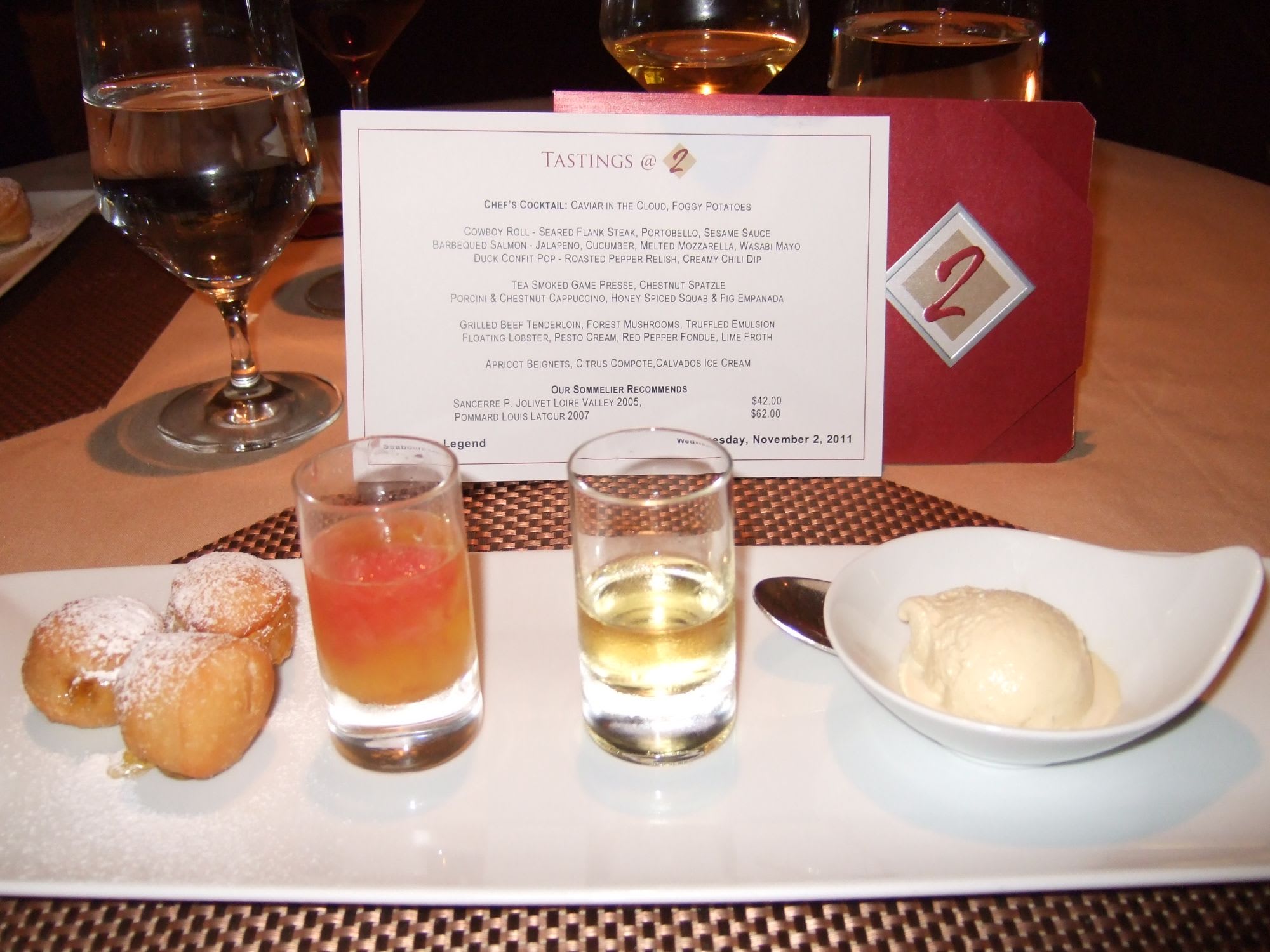 はじめてのシーボーン・レジェンドのクルーズで、レストラン2で食べた、Tasting Menu です。いずれも工夫された、驚きのある料理ばかりで、味わい、食感、香りもすばらしかったです。特に、メイン料理のビーフとロブスターには、感動しました。