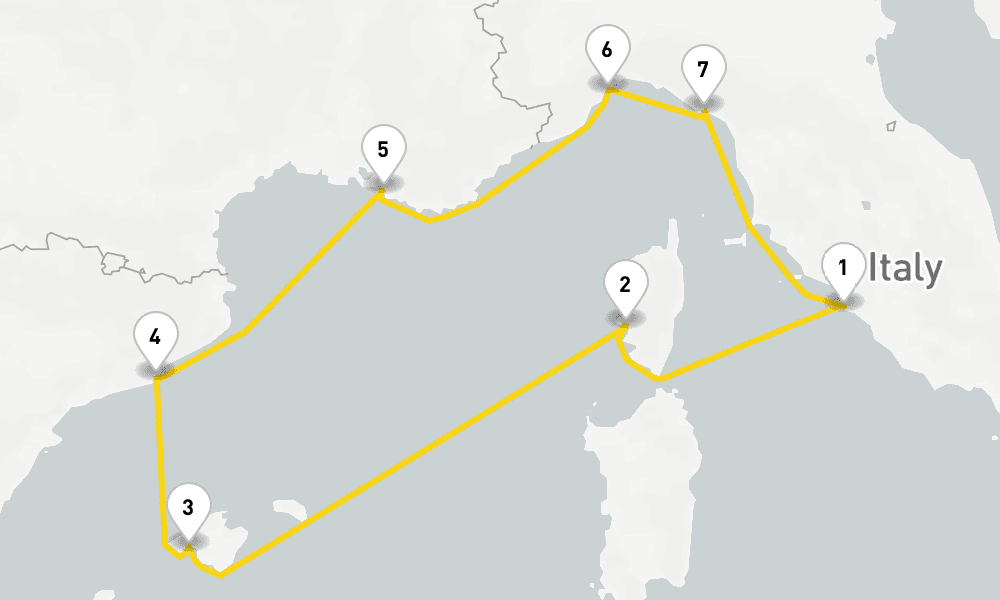 7泊8日でマヨルカ、バレンシア、マルセイユ、サボナ、ラ・スペツィアを巡る好適なコースだったので。