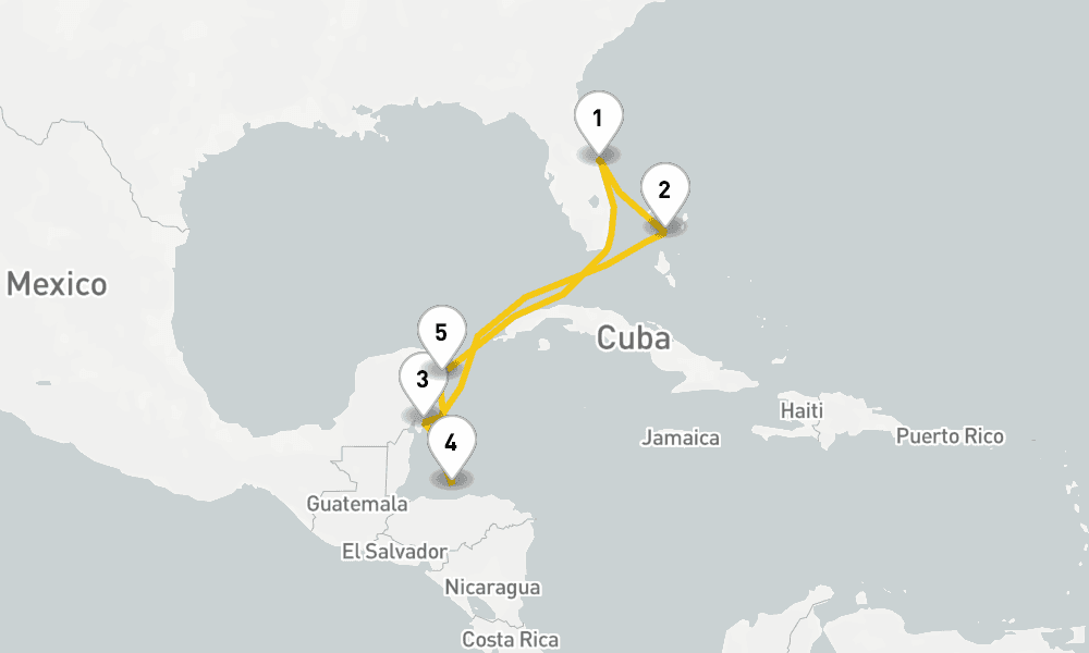 以前より子供を連れて行きたかったケネディ宇宙センターがあるポートカナベラル出港だったことと、マヤ文明の遺跡を見てまわりたかったため。