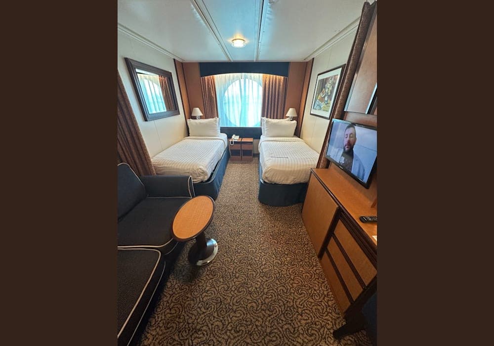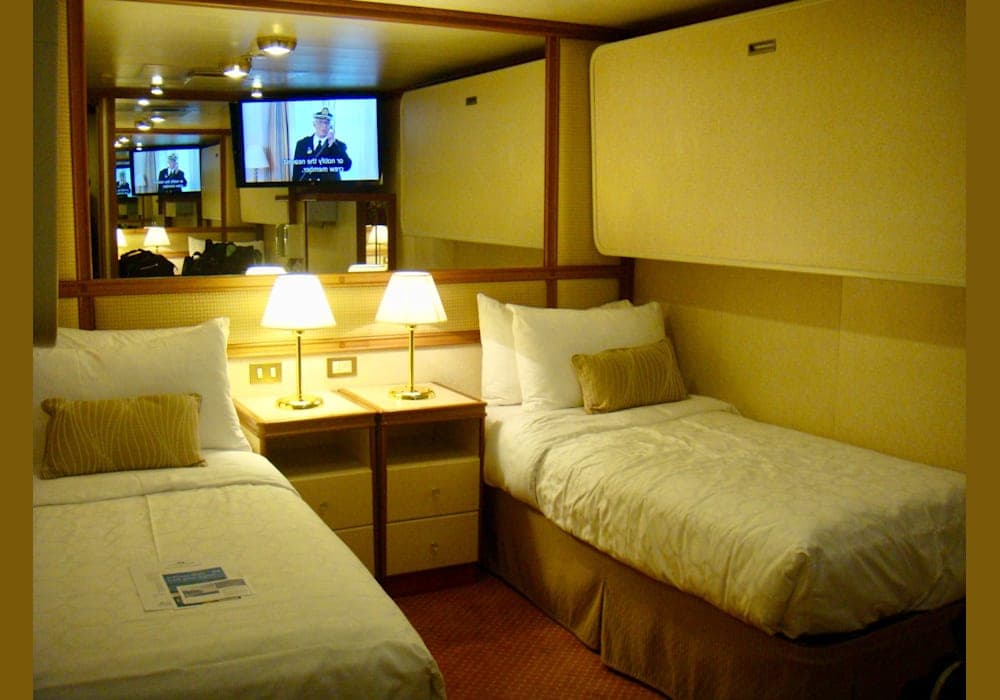 オイローパの横浜寄港で、横浜大桟橋へ撮影に出かけた時に 大桟橋内にある"ゆたか倶楽部"さんの営業所を覗いた時の事です。 一枚のパンフレットが目にとまりました。 「航空券込み9万~」 "えっ!?"と目を疑いつつ眺めてみると、 ・クルーズ会社は"RCI" ・エリアは、西海岸コースタル ・表示されていたのはインサイドの...